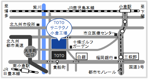 | 工場の特徴 | 国内初の衛生陶器量産工場 腰掛便器・洗面器・小便器等の生産拠点 |